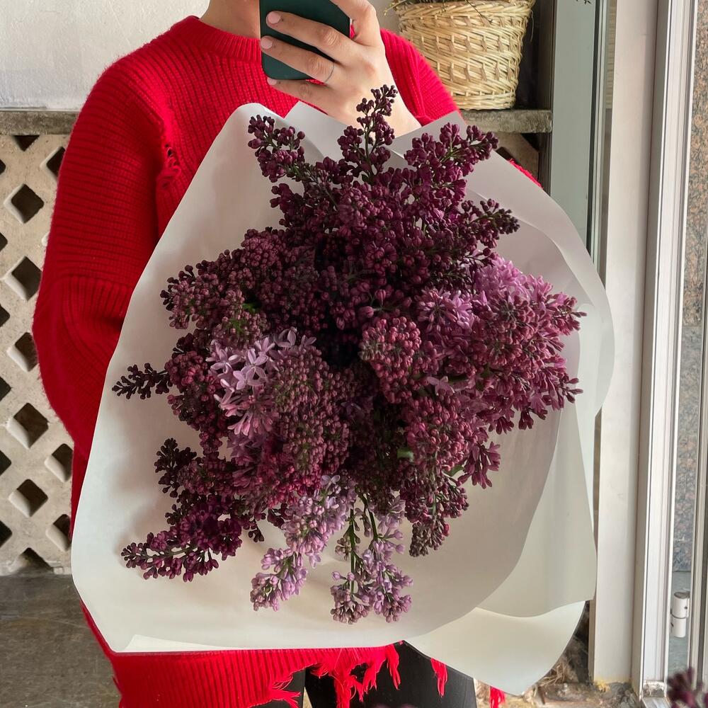 Букет ароматной сирени для нетерпеливых, запах из детства, свиданий и безграничного счастья.Состав комплекта :букет;мини-открытка;транспортировочная упаковка;инструкция по уходу.Повторы могут отличаться от фото, потому что цветы живой материал, их форма и оттенки … Показать ещёизменчивы, потому точь в точь не всегда получается, так же нам важно, чтобы каждый букет был особенным и индивидуальным. Однако, мы обещаем сохранить состав максимально, выдержать цвет, форму и общее настроение букета.