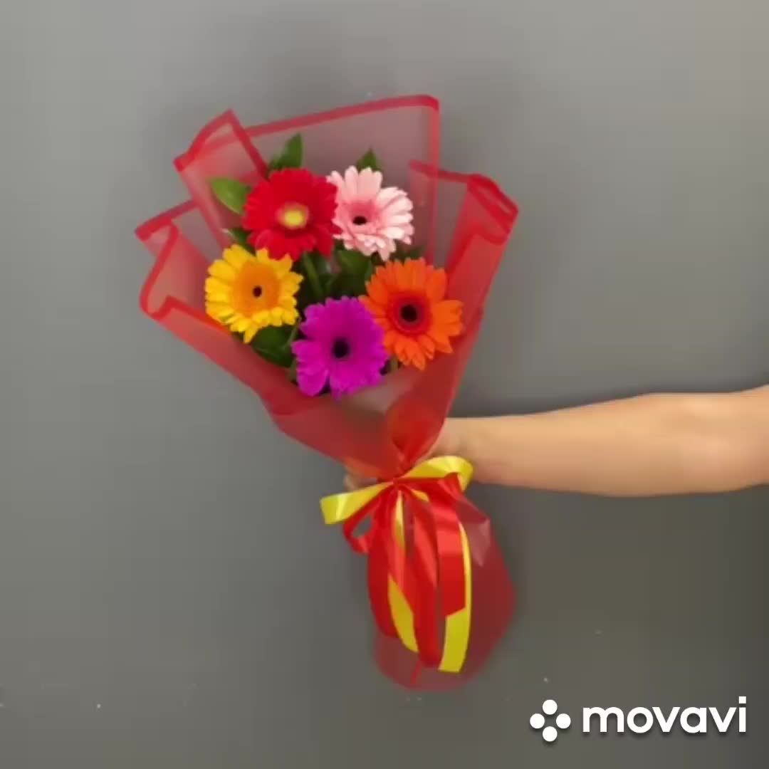 Рускус – 6 шт.Лента атласная – 1 шт.Гербера мини – 5 шт.Упаковка дизайнерская – 1 шт.