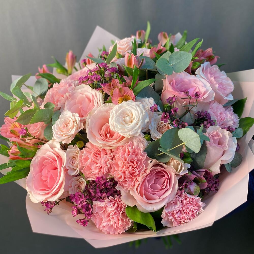 Гвоздики, Кустовые розы, Пионовидные розы, Розы