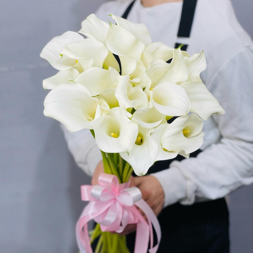 Калла белая – 19 шт.Лента атласная – 2 шт.
