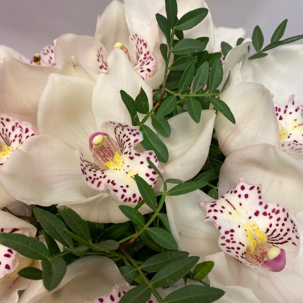 Орхидея Цимбидиум – 9 шт.Фисташка пучок – 1 шт.Коробка шляпная – 1 шт.