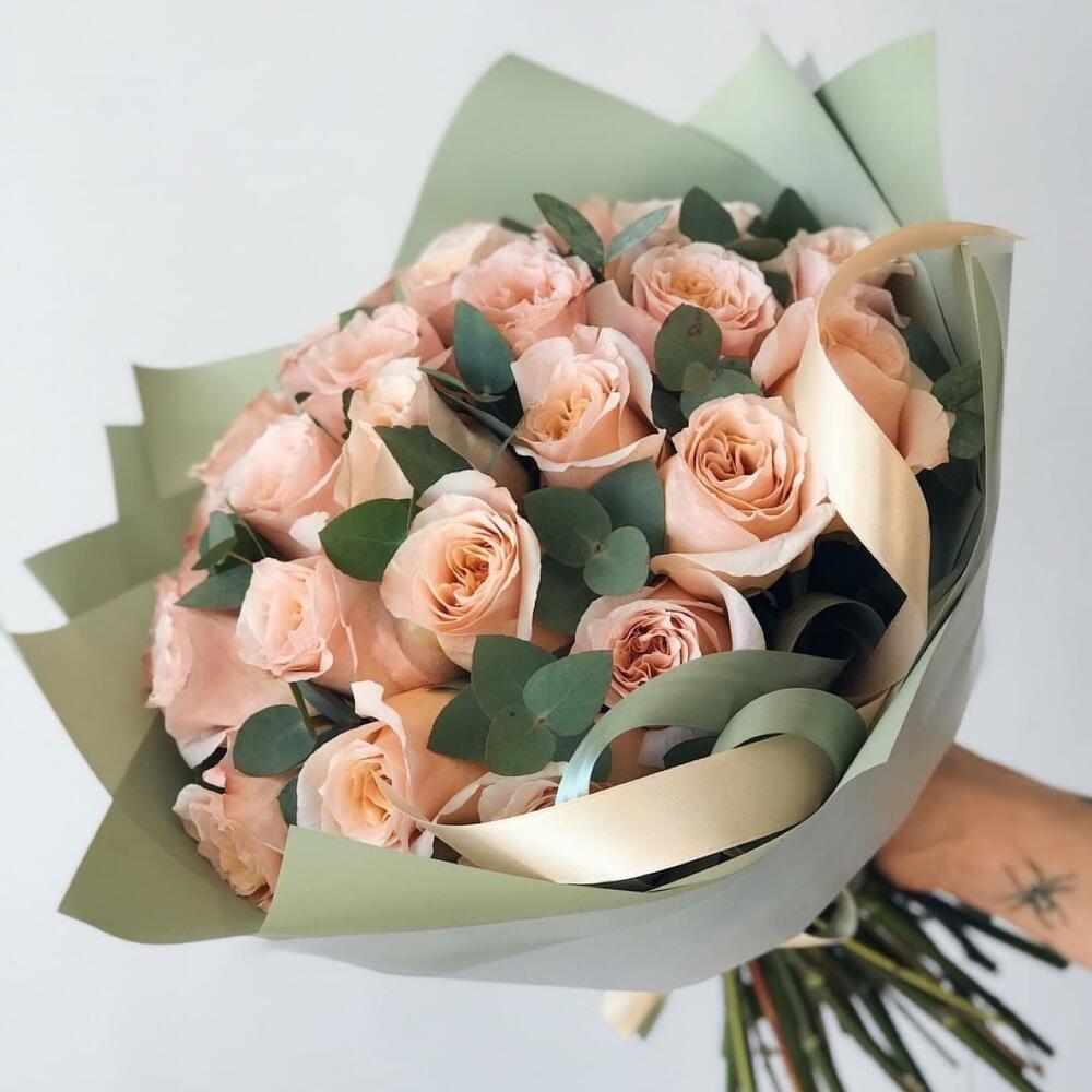 “Эвкалиптическая роскошь” гортензия и пионовидная кустовая роза