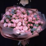mono bouquet 88 из 25 кустовых пионовидных роз сорта madam bombastic и эвкалипта